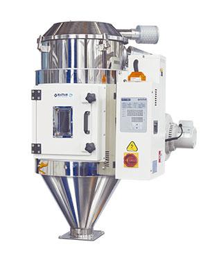The HTHD series of hopper dryers are effective and economical machines designed to dry plastic raw materials that have become damp due to packaging, transport or recycling. Their direct-drive design allows them to be mounted directly onto plastic moulding machines, saving both time and space. These top-blow hot-air dryers can handle loads ranging from 12 to 1,000 kg.